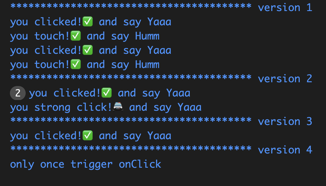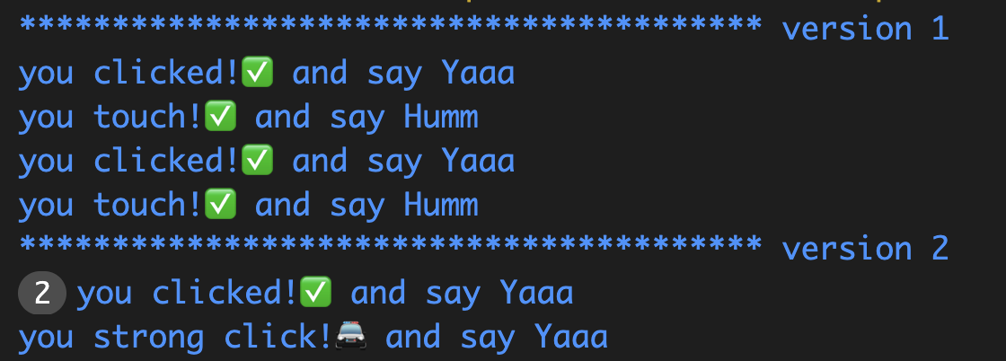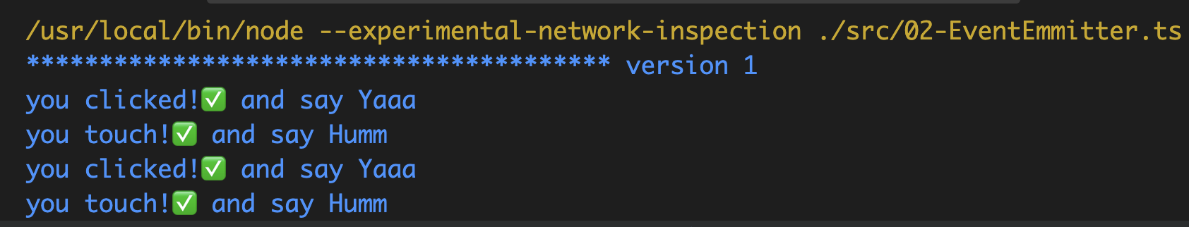 console.log("*".repeat(40), "version 3"); classEventEmitterV4 { privateeventRegister: Map<string, { fn: Function, onceFlag: boolean }[]>;//we need to update the structure constructor() { this.eventRegister = newMap(); }